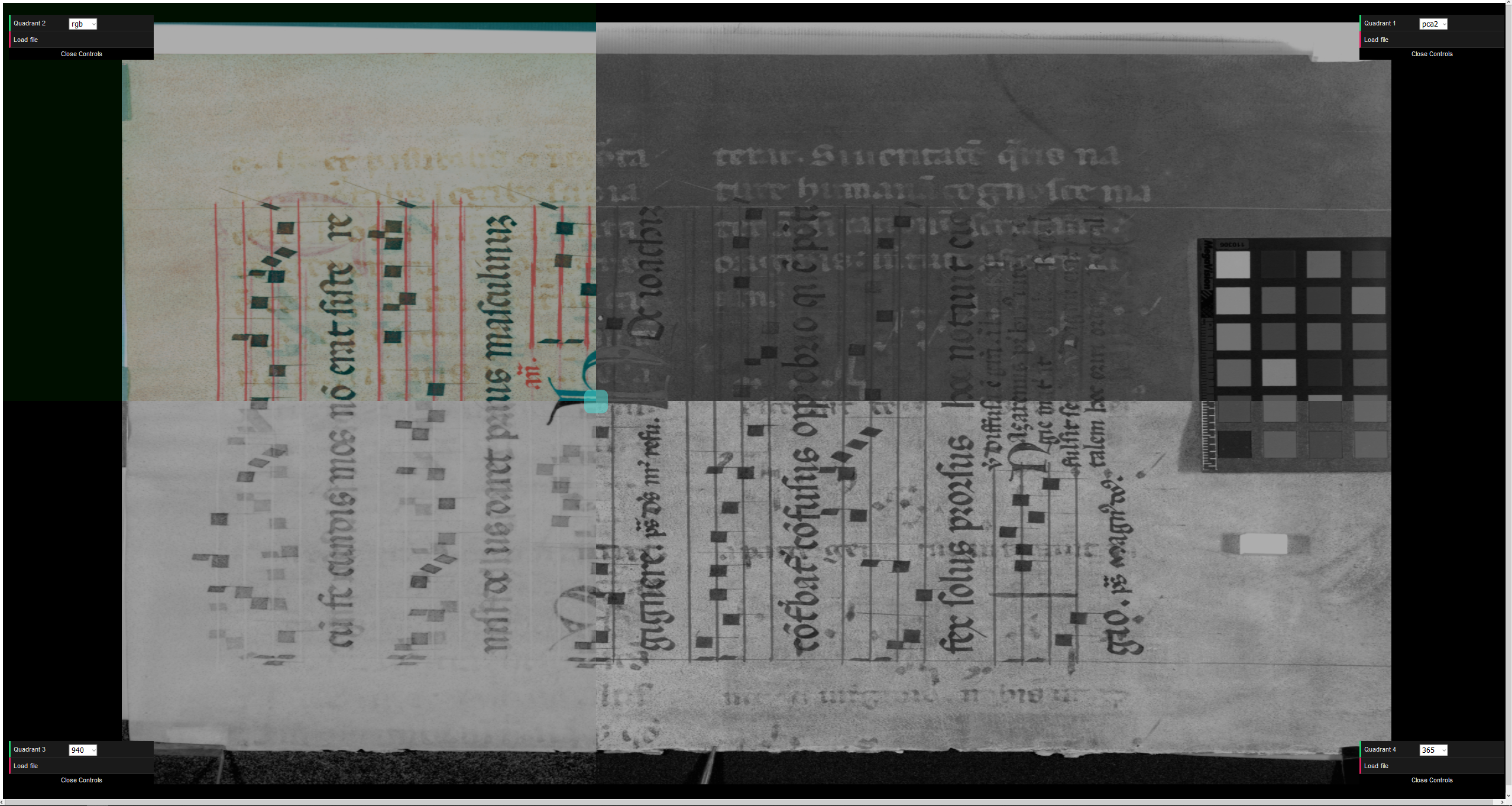 I am working with Dr James Ferwerda in developing Web-based tools for simultaneous visualization and analysis of mutispectral images. The images show a 'quad viewer' that enables visualizing four multispectral bands simultaneously, a multispectral window that provides a drag and place window to analyze a section in a different spectral band and a spectral highlighter that displays a different spectral band at finger strokes. Latest code can e found here - https://github.com/snehalpadhye/MultispectralViewer